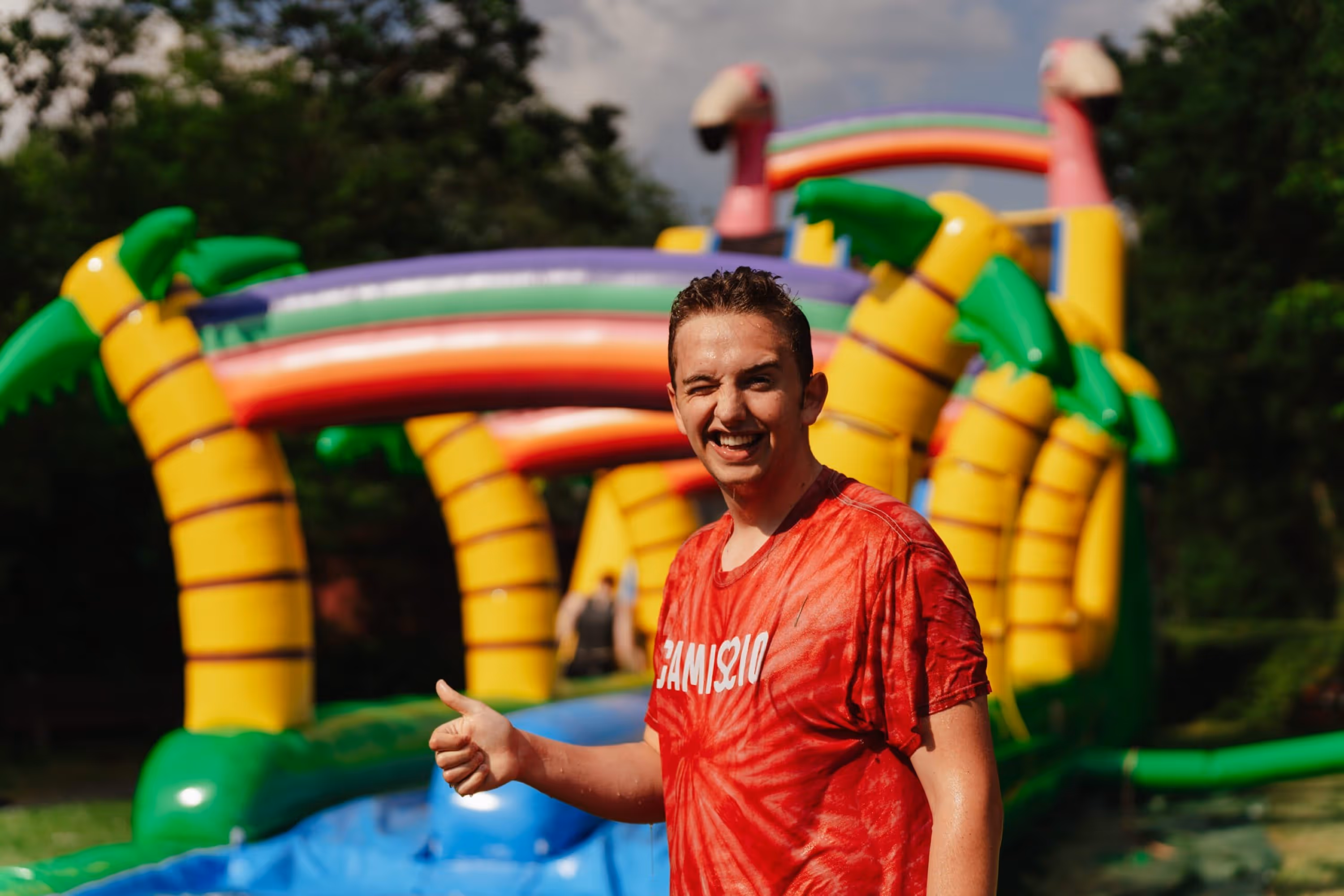 Die Logistik der Wasserrutsche organisiert der Mieter.