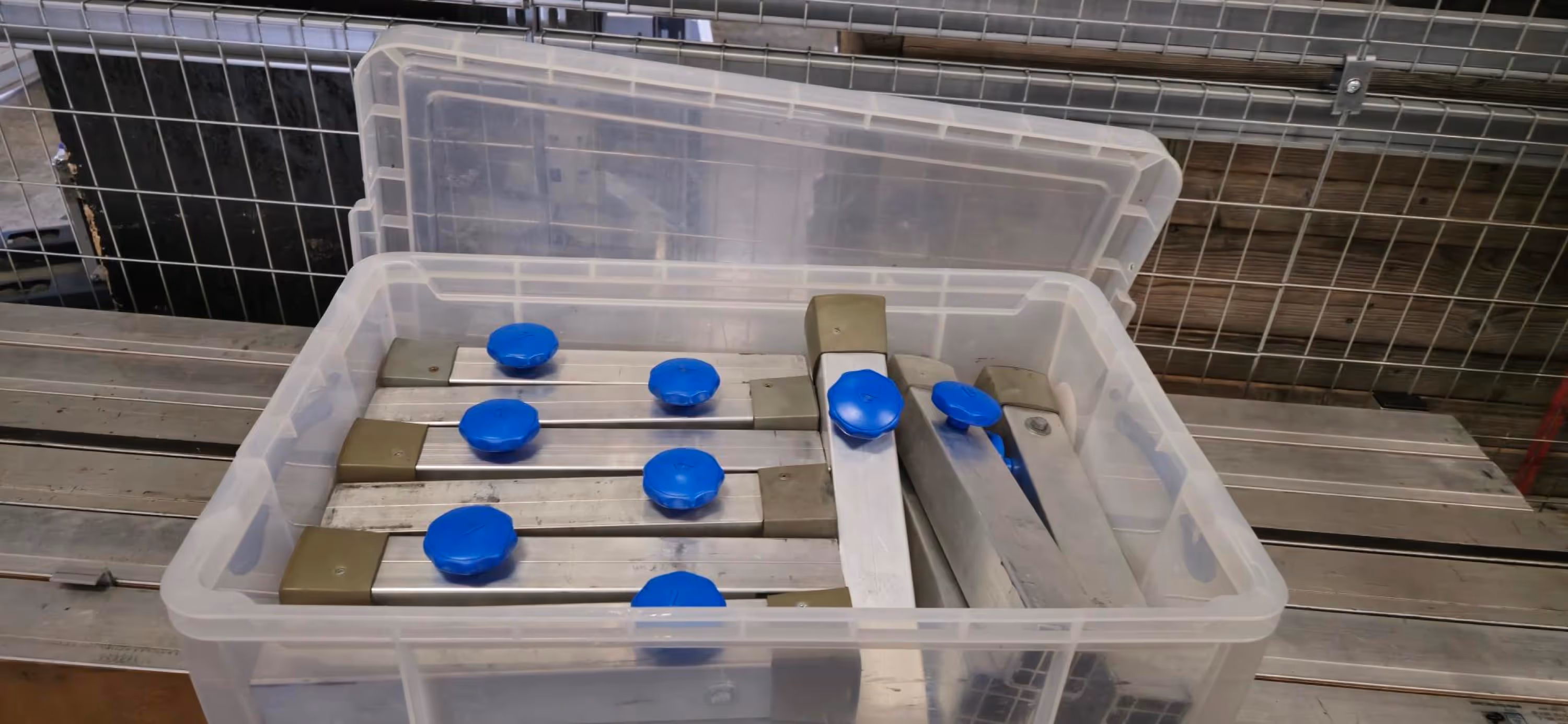 Der Parcours steht auf einer Europalette und kann einfach über einen Gabelstapler oder einen Hubwagen mit Rampe in einen Transporter eingeladen werden.